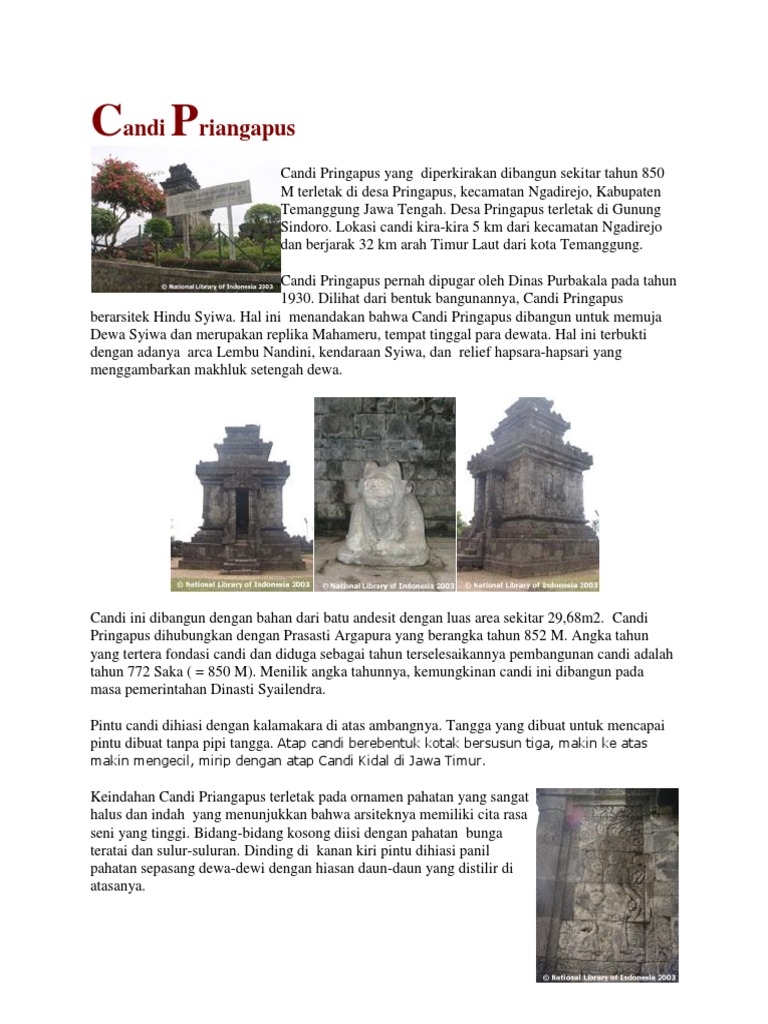 Candi pringapus menjadi destinasi wisata sejarah dan budaya di kabupaten temanggung jawa tengah yang rekomended untuk mengisi libur akhir pekan. Candi pringapus (en) candi pringapus (id). Candi pringapus adalah candi di desa pringapus, ngadirejo, temanggung 22 km arah barat laut ibu kota kabupaten temanggung. Candi pringapus memiliki ukuran kecil dan kondisi candi tergolong masih utuh. Candi pringapus adalah candi di desa pringapus ngadirejo temanggung 22 km arah barat laut ibu kota kabupaten temanggung.